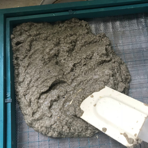 Put your felt or absorbent cloth on top of the mix in the frame and keep dabbing your sponge on it and squeezing the sponge out to remove a lot of the liquid.